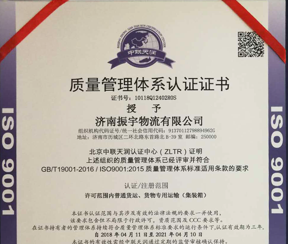 ISO 9001質量管理體系認(rèn)證證書(shū)