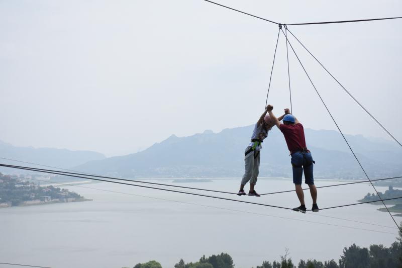 2人相依爲命高空踩鋼絲