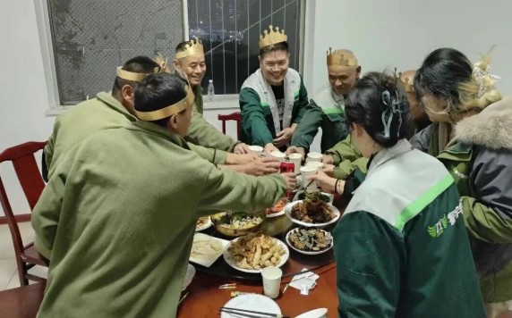 壽星們圍坐,燭光逐一亮起時,有人閉(bì)目凝神,有人望向身側的同事,輕聲許下心願。從許願時的真誠,到吹蠟燭時的歡呼,再到飯桌上的暢聊,這場生日會傳遞的不僅是溫暖,更是振宇物流“以人爲本”的核心價值觀。它讓員工感受到企業不隻是工作的平台,更是並(bìng)肩前行的“家人”,成長不隻是個人的奮鬥,更有團隊的托舉。